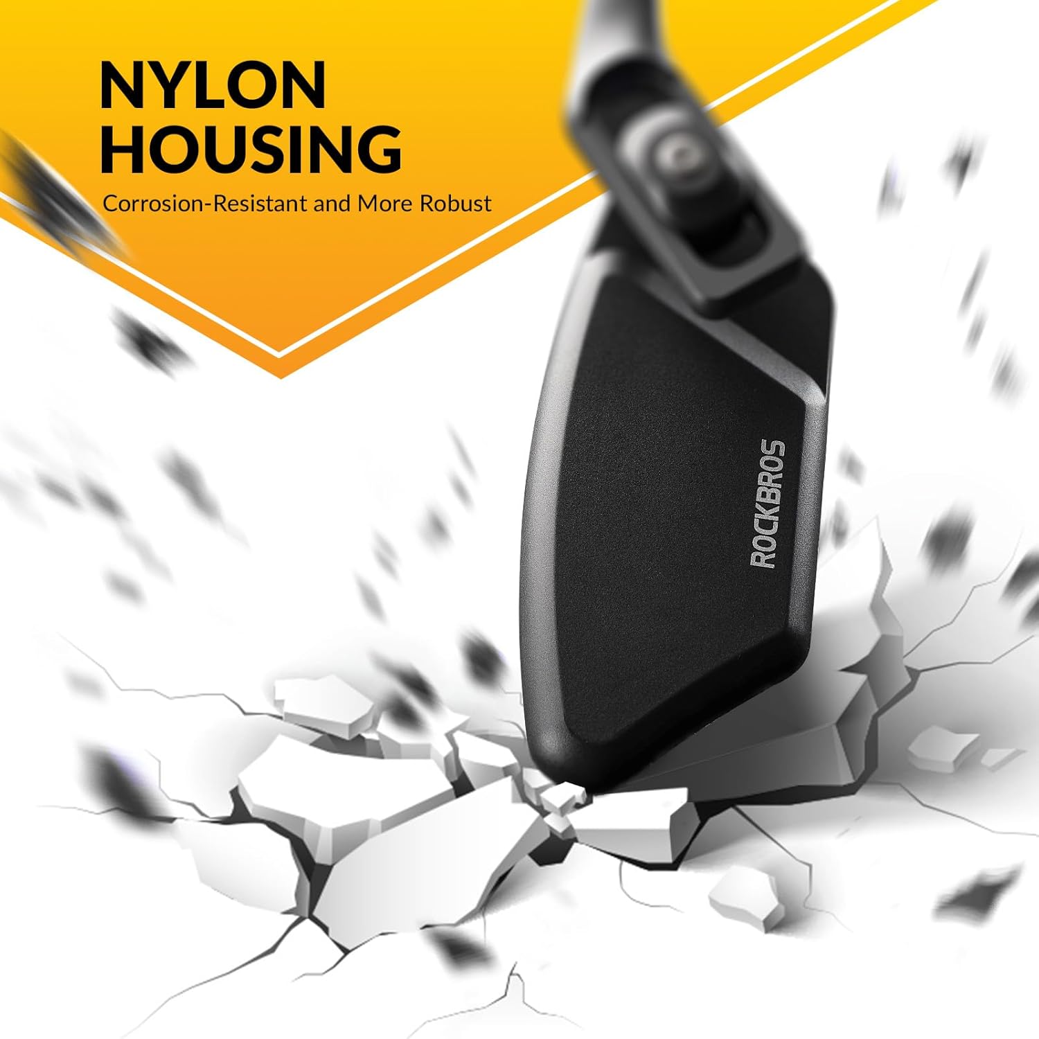 【Clear & Security】ROCKBROS bike mirror, with a polished surface, offers a clear, wide view for easy tracking of traffic behind you. Built with stainless steel, it ensures impact resistance comparable to car safety glass—reliable and safe for your rides.